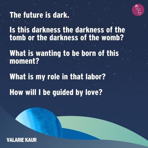 This reminded me of Valerie Kaur’s speech at the “Watch Night Service” in 2016, the last time that Trump was elected.